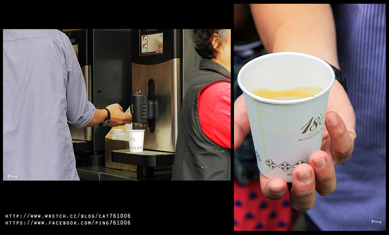 另外在18度C巧克力工房對面,有設立現磨咖啡機,可免費自行取用喔,